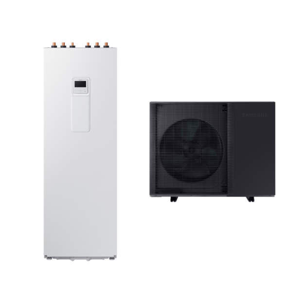 A+++ klasės Samsung 12.5/12.5 kW oras–vanduo šilumos siurblys su 200 l talpa, WiFi ir trifaziu pajungimu – galingas ir patikimas šildymo sprendimas