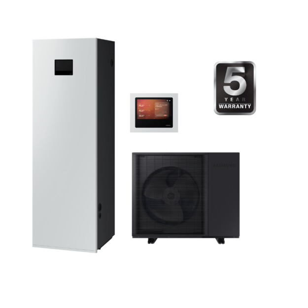 A+++ klasės Samsung 12.5/12.5 kW oras–vanduo šilumos siurblys su 200 l talpa, WiFi ir trifaziu pajungimu – galingas ir patikimas šildymo sprendimas